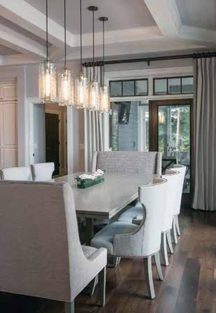 included living on the lake full-time. This helped shape and dictate the home’s design. Their first priority was entertaining. “Our motto as we were designing the home was, ‘If you build it, they will come,’” the wife explains. “Having four sons, they’re all just starting their families, so we were thinking of lots of family that comes up to visit.”