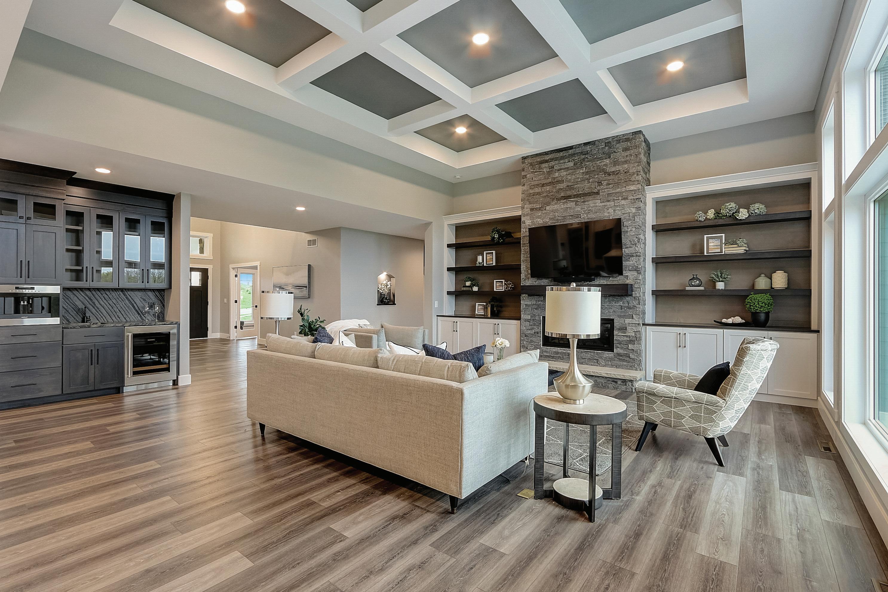With five bedrooms and four-and-a-half baths, the Redwood is ideal for large families. Even more appealing is the fact that Victory Homes of Wisconsin offers every homeowner the opportunity to personalize their home plan. In the two-story foyer visitors can catch a glimpse of the home’s many captivating features. A home office is located near the entrance. Luxury vinyl plank flooring stretches across the main floor to the two-story great room where a wall of windows overlooks the back yard.