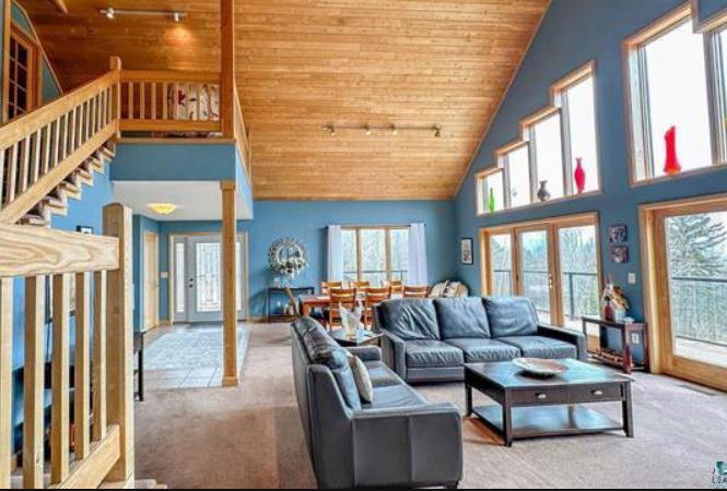 This beautiful three bedroom, three bath home has three fireplaces and a three stall attached garage on over 13 acres. The details in the planning of this home by the original and current owners captures Lake Superior views from nearly every room including the large wrap around deck. This home estate is complemented with a private guest home complete with bath and kitchen.