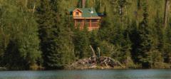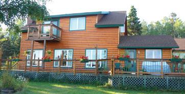 2 well built log homes. Each with log sauna buildings, sand beaches, sheltered mooring area, more building sites and southern views of Scotch Lake. Surrounded by crown land and largest of only a few private parcels on this huge lake. Very secluded and
