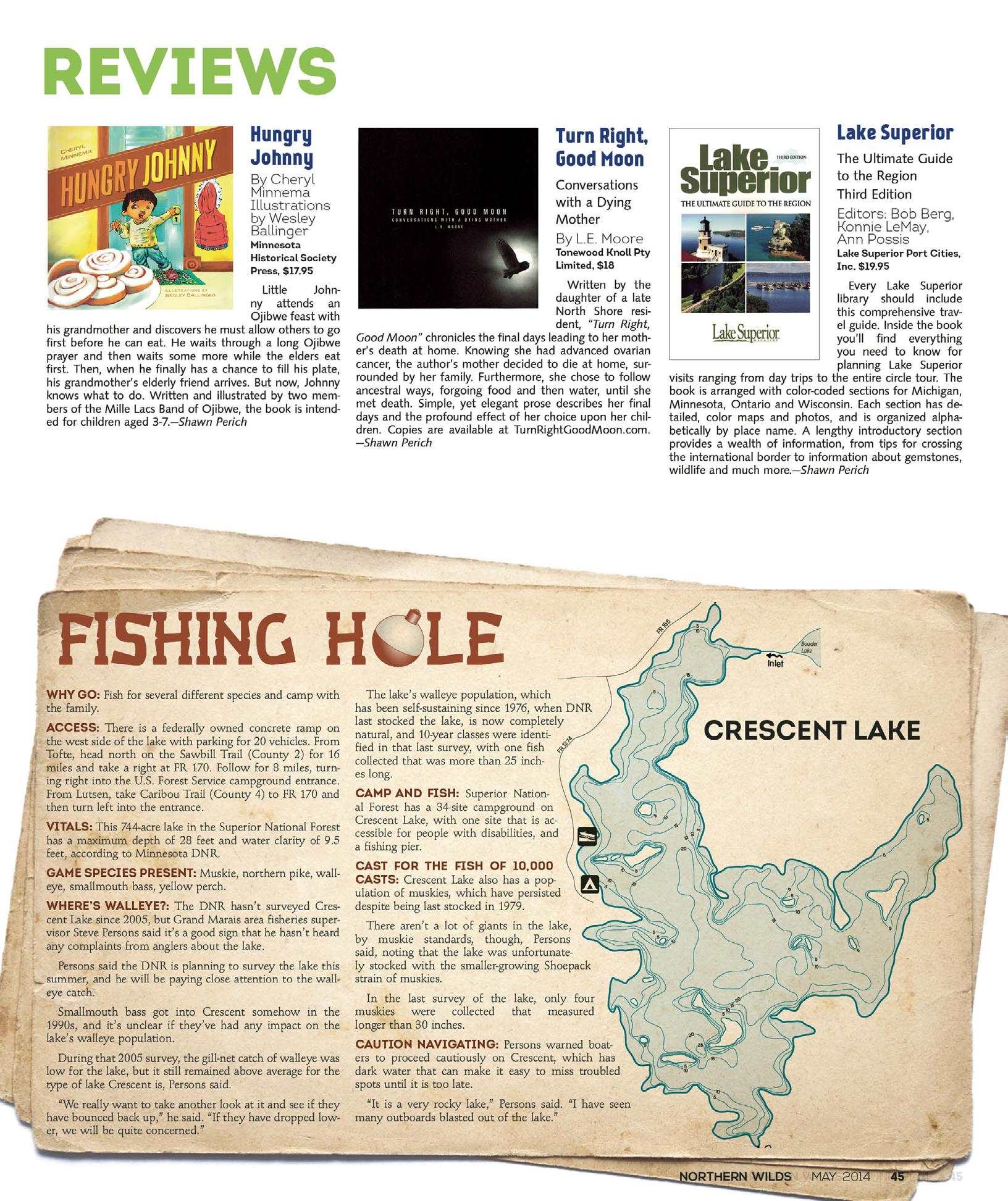 Published 12 times per year. Subscription rate is $28 per year or $52 for 2 years. All rights reserved. Reproduction in whole or in part requires written permission from the publishers. Northern Wilds Media, Inc. P.O. Box 26, Grand Marais, MN 55604 (218) 387-9475 (phone/fax)