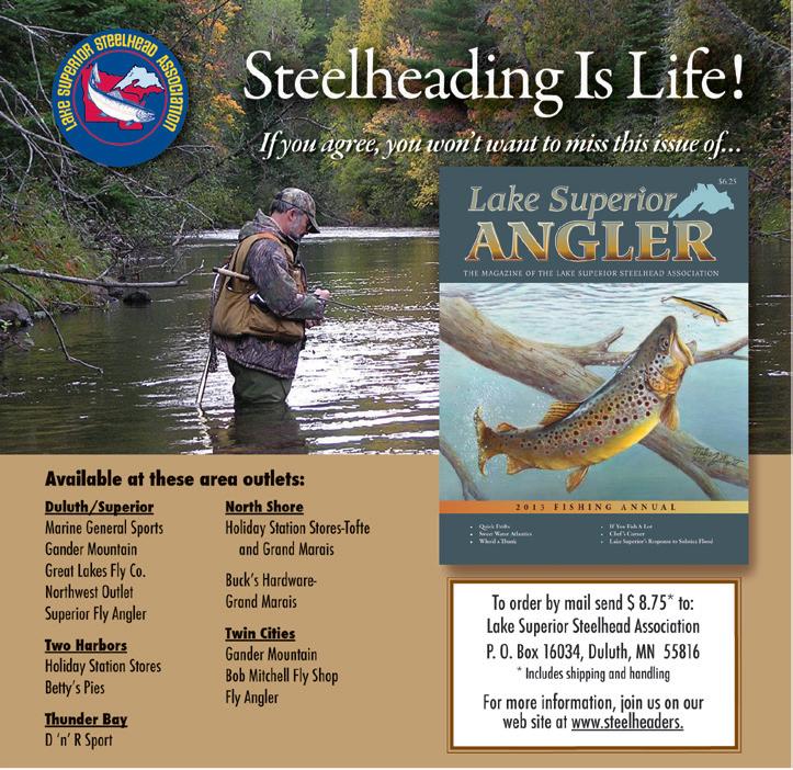 BEAR TRACK’S FISHIN’ CHICS Lake Superior ½ day Fishing Charters for Trout and Salmon aboard 27’ boat with the Williams. Shore cruises, Bird tours, lunch and dinner cruises. Inland fly-fishing & spin-cast guides, Fly-fishing clinics. outfitters@bear-track.com www.bear-track.com Toll-free 1-800-795-8068