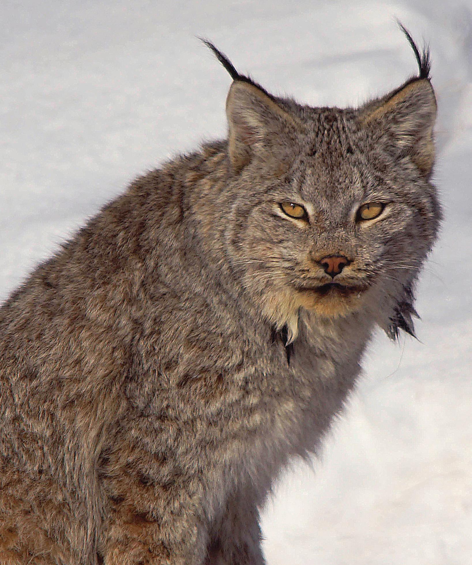 While traveling through Tettegouche State Park along Hwy 61, I spotted this lynx feeding on a car-killed deer. I was fortunate that it gave me a quick glance before disappearing into the thick balsams.—Paul Sundberg