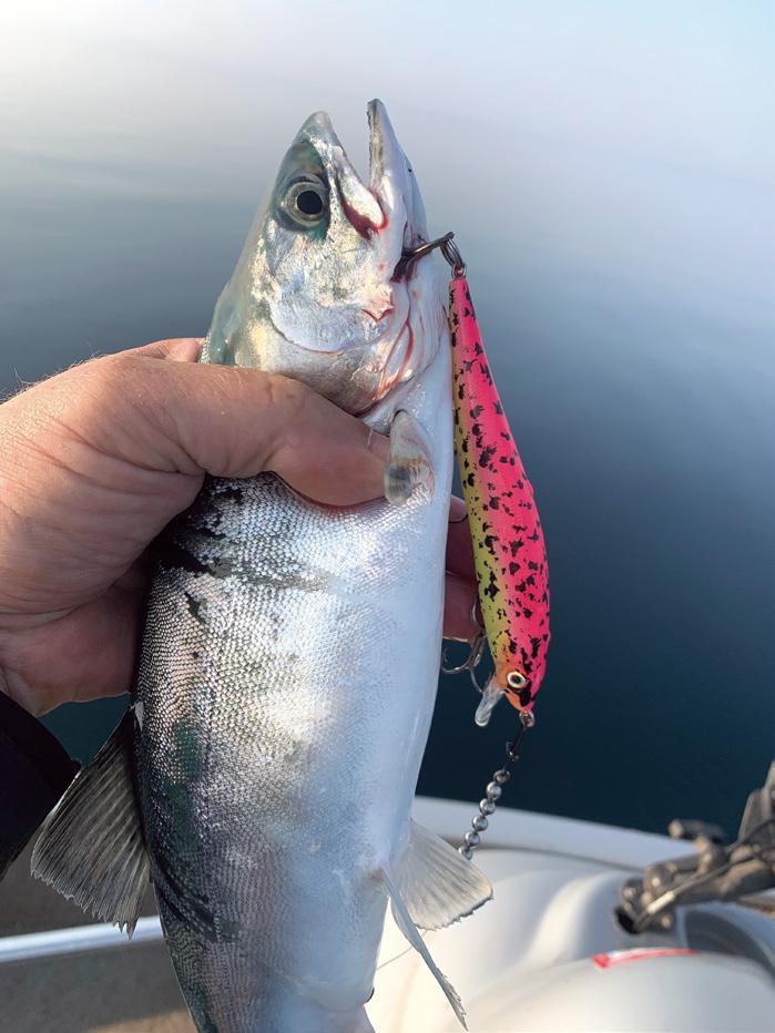 [ABOVE] Close-up of a silvery, lakecaught pink salmon. Silvery fish caught in the lake are decent eating, but they are best eaten fresh, not frozen. | SUBMITTED
