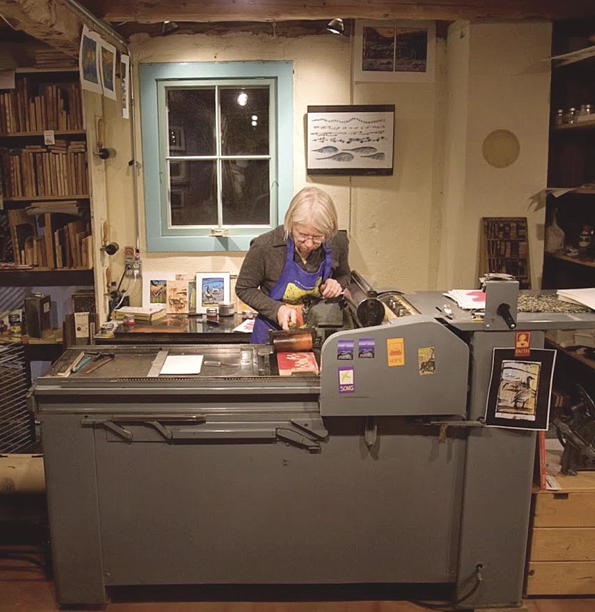 Members of the Duluth, Two Harbors, and Silver Bay art pod meeting in the studio of member Shelley Getten for a hands-on block printing demonstration. | SUBMITTED