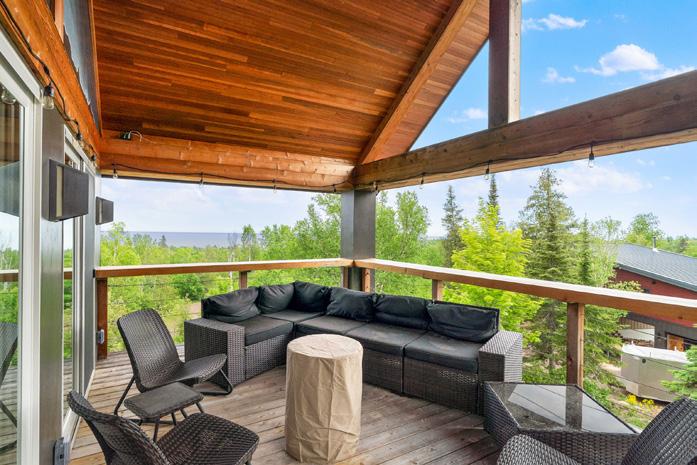 baths. An open, airy kitchen overlooking the living room which has a comfy gas fireplace and access to the deck with lake views. 2000+ square feet here folks, bring the whole crew! Even a spacious sauna downstairs to ease those sore muscles after a day at Lutsen Mountains! This home is a place to hole up, get back to basics: family, dreaming, thinking, food, Love. Lutsen Lake Love!
