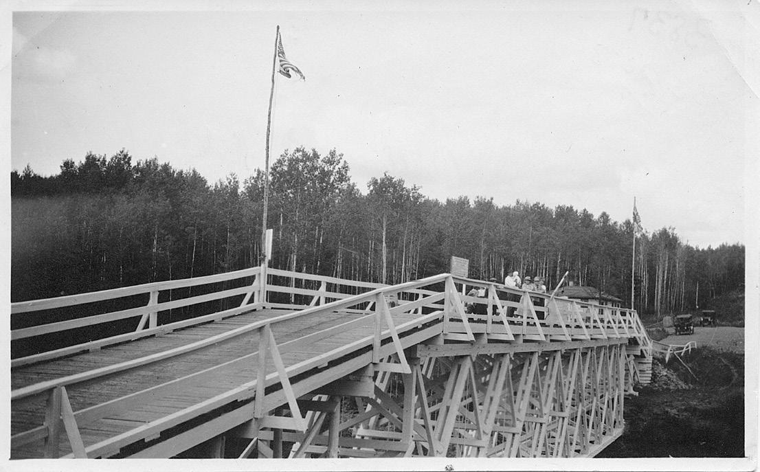 It wasn’t perfect. The Cook County News-Herald reports on an inspection of the bridge by county commissioners, the county auditor, the county surveyor and William Corcoran of the Pigeon River Lumber Company on May 2, 1917. The article declares the group was “highly pleased with the bridge and say it is a good substantial structure, and except for the approaches at both ends, it is fully completed.”