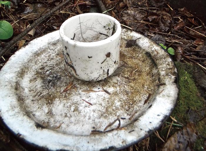 scooped out the debris and could then confirm the mass as a hollowed out log. We levered the canoe with a stick while lifting it with a strap until the waterlogged artifact broke the surface. We were able to pull most of the canoe out of the water, which was enough to get beautiful photographs. Afterwards, we let the canoe sink back into the swamp to stay preserved in its watery grave.—Kathy Toivonen
