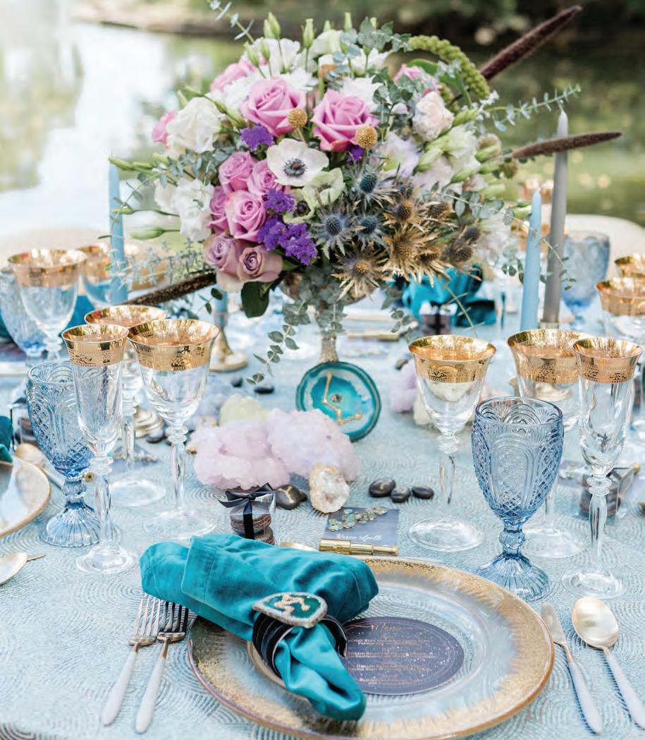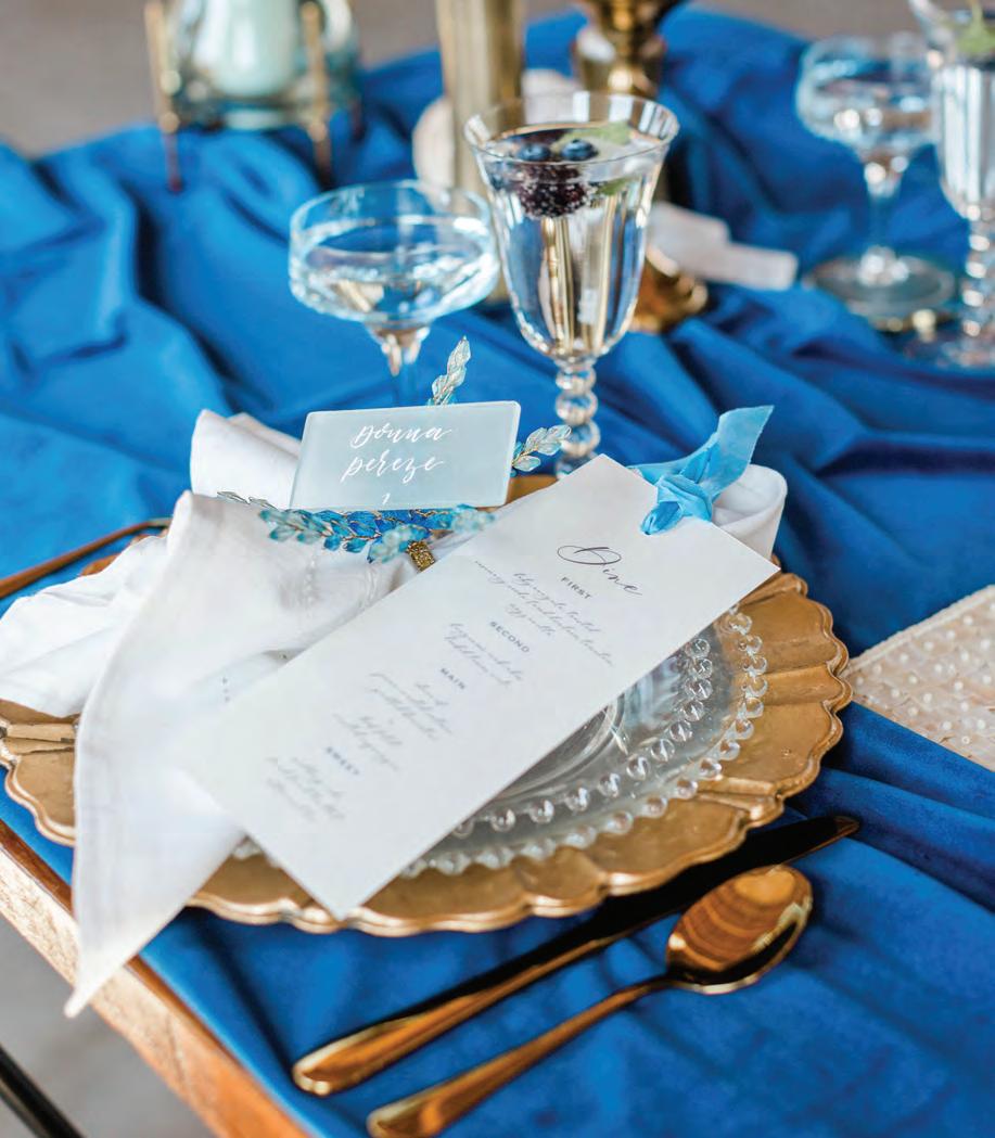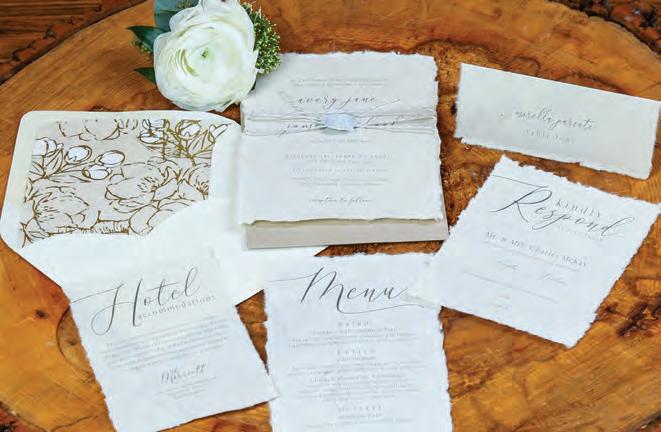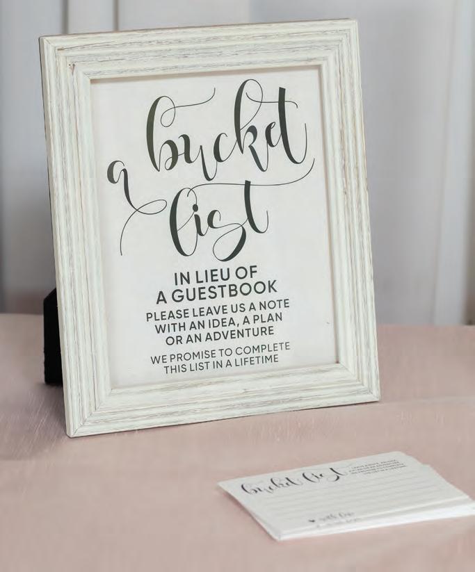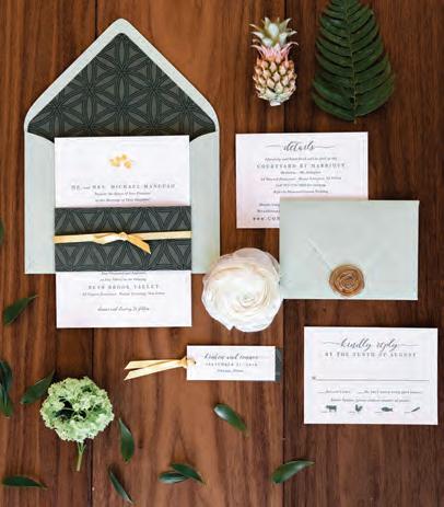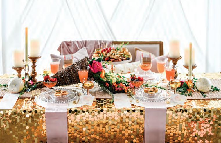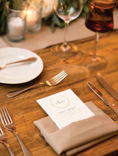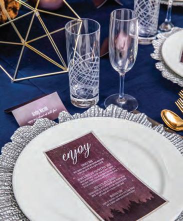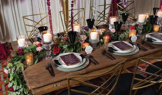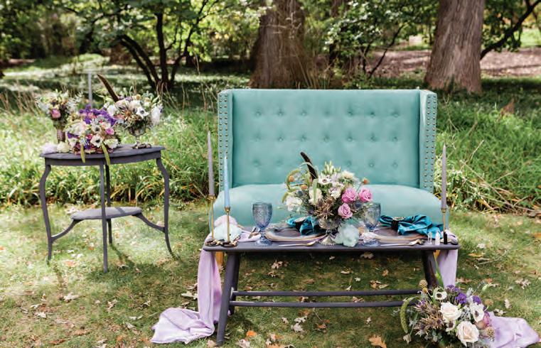 First, narrow down your style. You’ll be building your wedding around it, so you’ll want to stay consistent when you’re talking to vendors. Our Style Profiles start on page 34 and showcase some of this year’s hottest colors and themes, courtesy of some of our favorite vendors. From retro chic to moody boho, you’re sure to find something you’ll love among these pages.