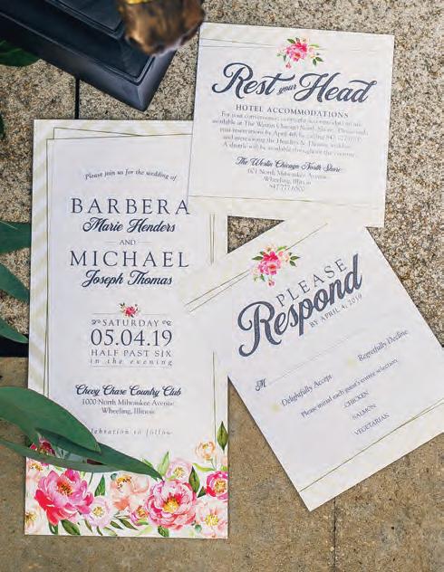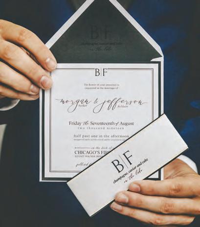 Next, build your dream team. It’s important to have a team of industry professionals you can trust to make your wedding dreams a reality without the stress of having to do it all yourself. Unique to The Celebration Society, our Venue and Vendor Guides (pages 47 and 103) showcase Chicagoland pros and all they have to offer side-by-side for you to compare.