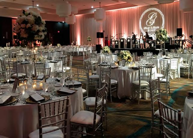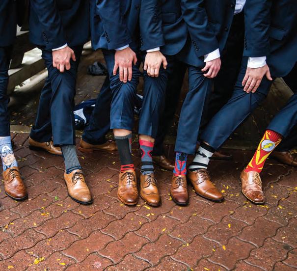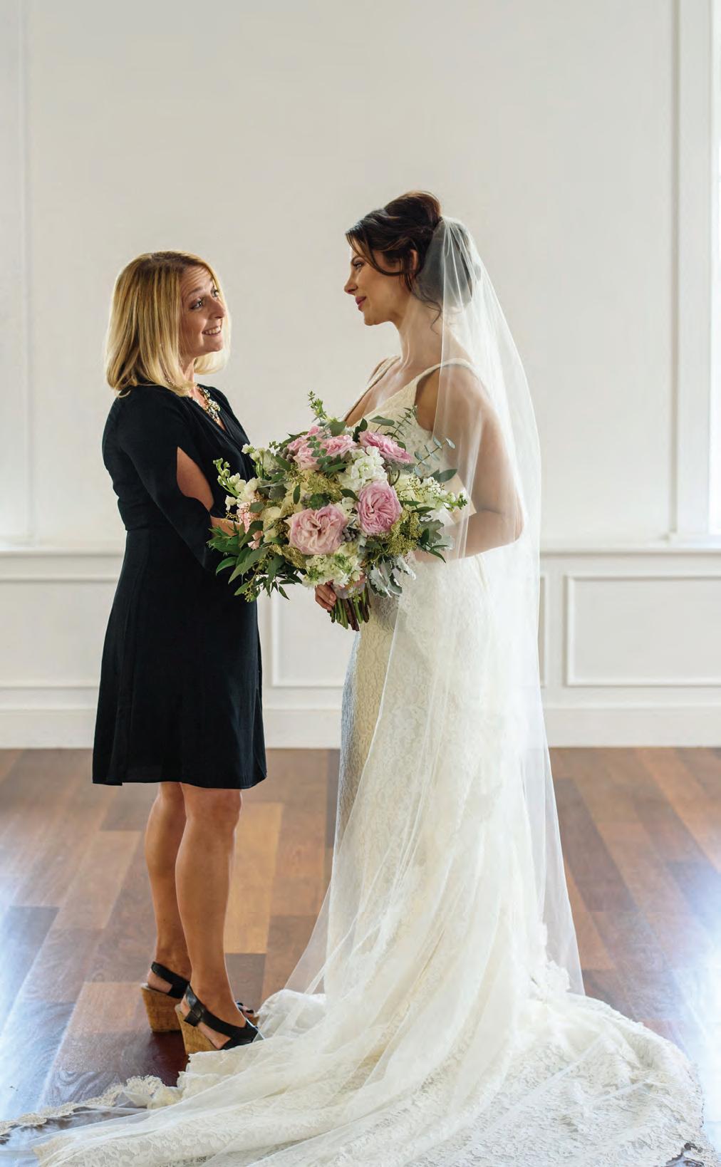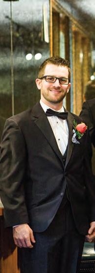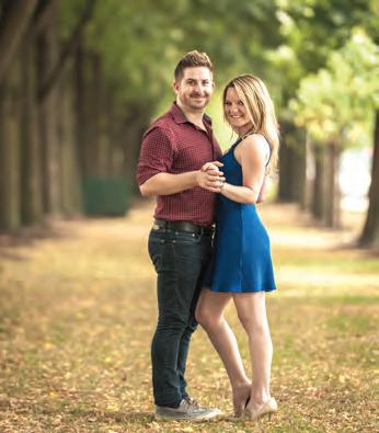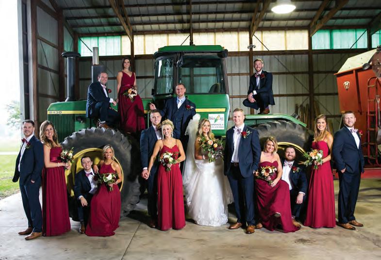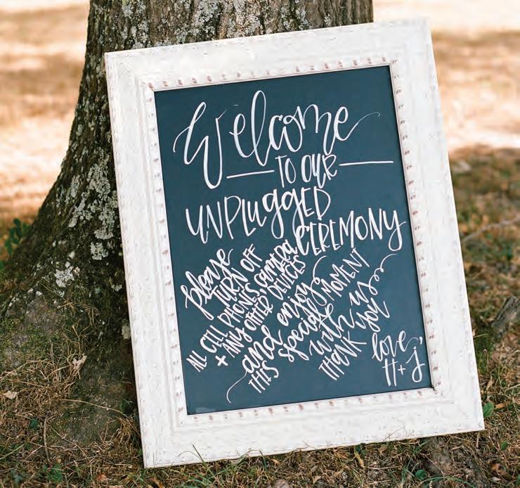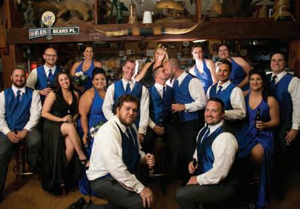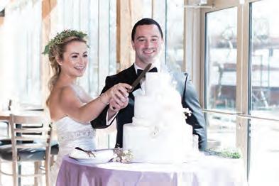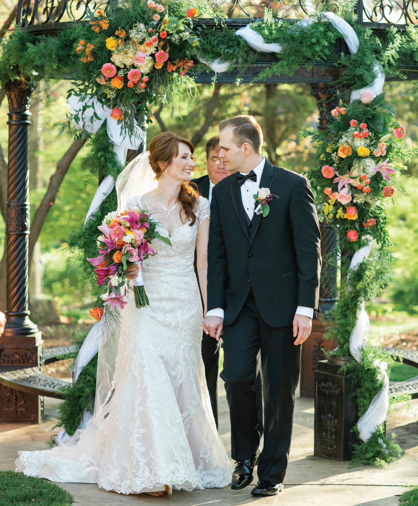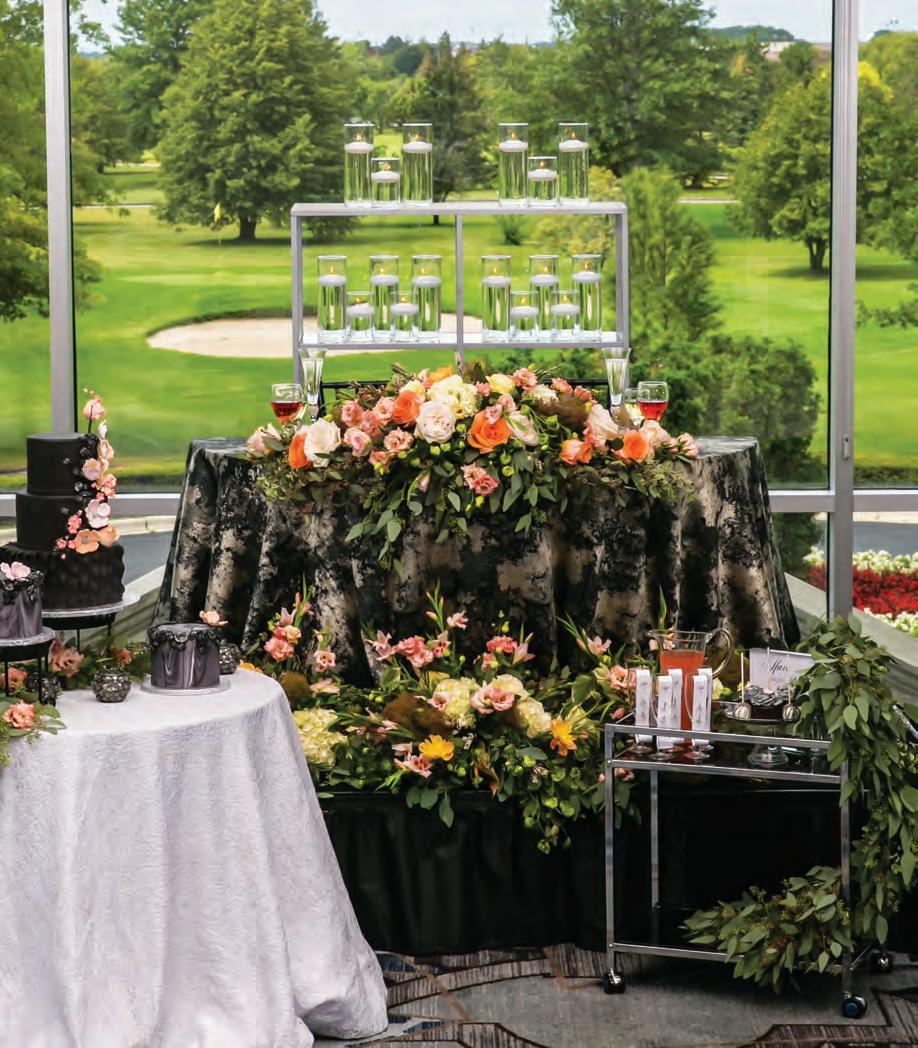 The rustic setting of The Haight was the perfect place for Sabrina and Jordan’s spring wedding. Sprawling greenery and white flowers decorated the wall in a modern twist to the traditional wedding arch. Groomsmen in gray escorted bridesmaids in slate with pops of purple in their bouquets down the aisle. In an elegant lace gown with a bountiful handtied bouquet by Town & Country Gardens, Sabrina made her way to her soonto-be husband knowing that his was the only hand she would hold for the rest of her life. A gorgeous reception awaited them after their vows. String lights hung across the ceiling and brick walls of The Haight, dangling over rustic wooden tables and Tolix chairs. Classic white plates sat atop modern copper chargers, surrounding centerpieces of lush spring flowers with geometric accents. Following a dinner of Lou Malnati’s deep dish pizza, street style tacos and barbecue by My Chef Catering, the newlyweds cut into a marble-esque cake, created by Two Wild Seeds. Sabrina and Jordan shared their first dance under the glow of the string lights before dancing the night away with their guests.