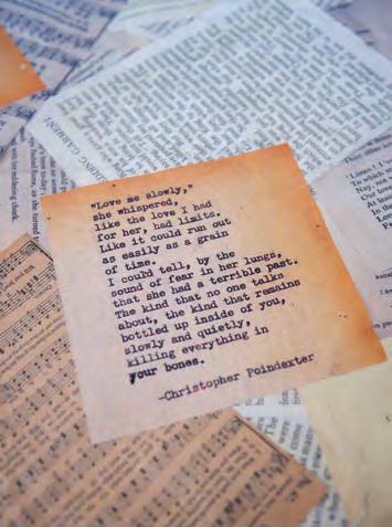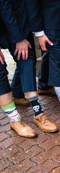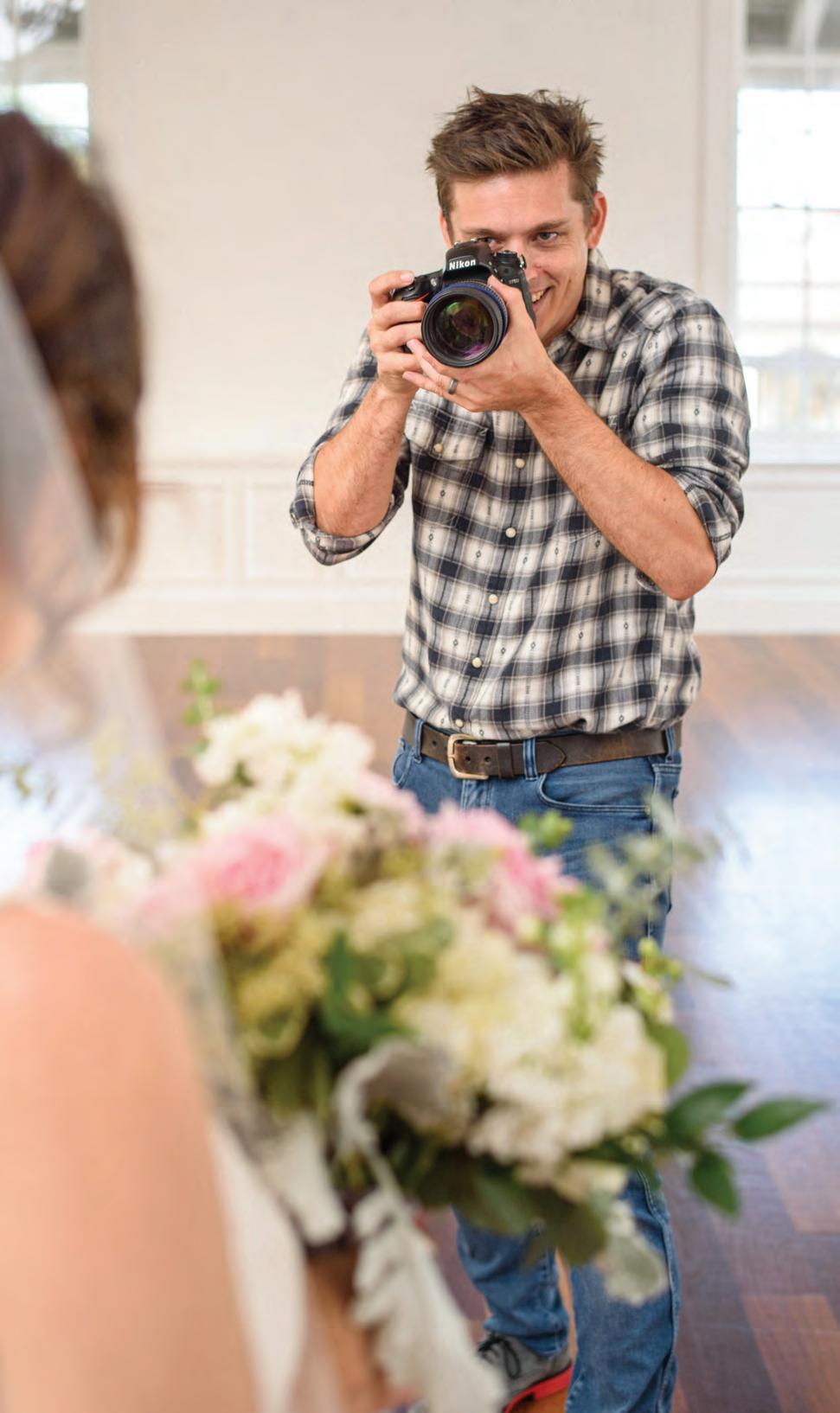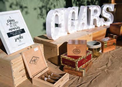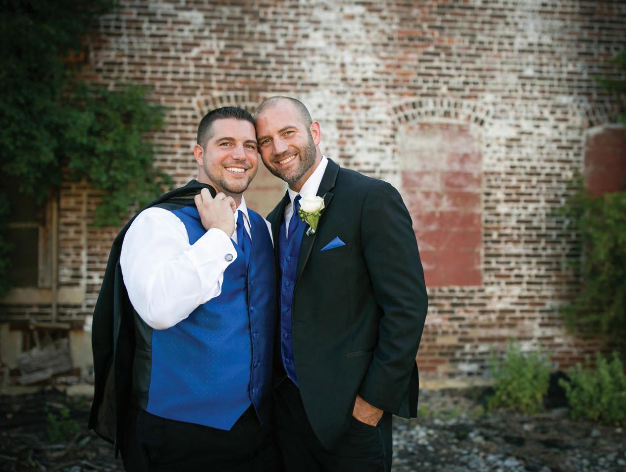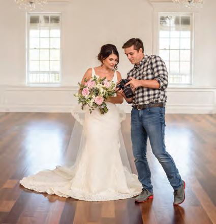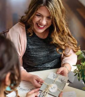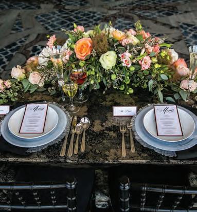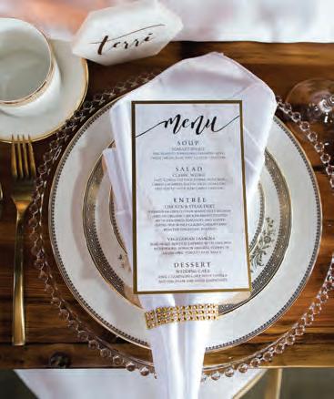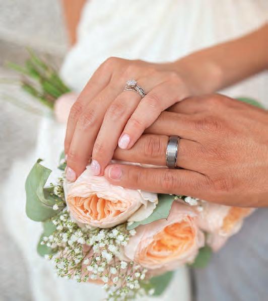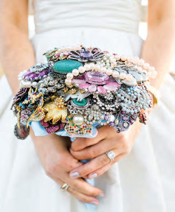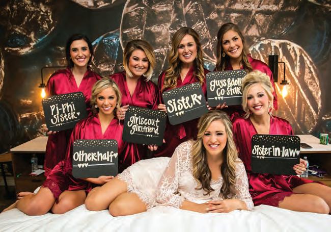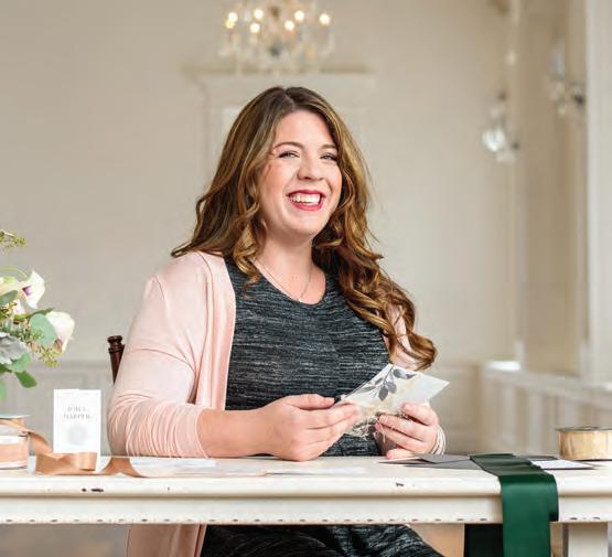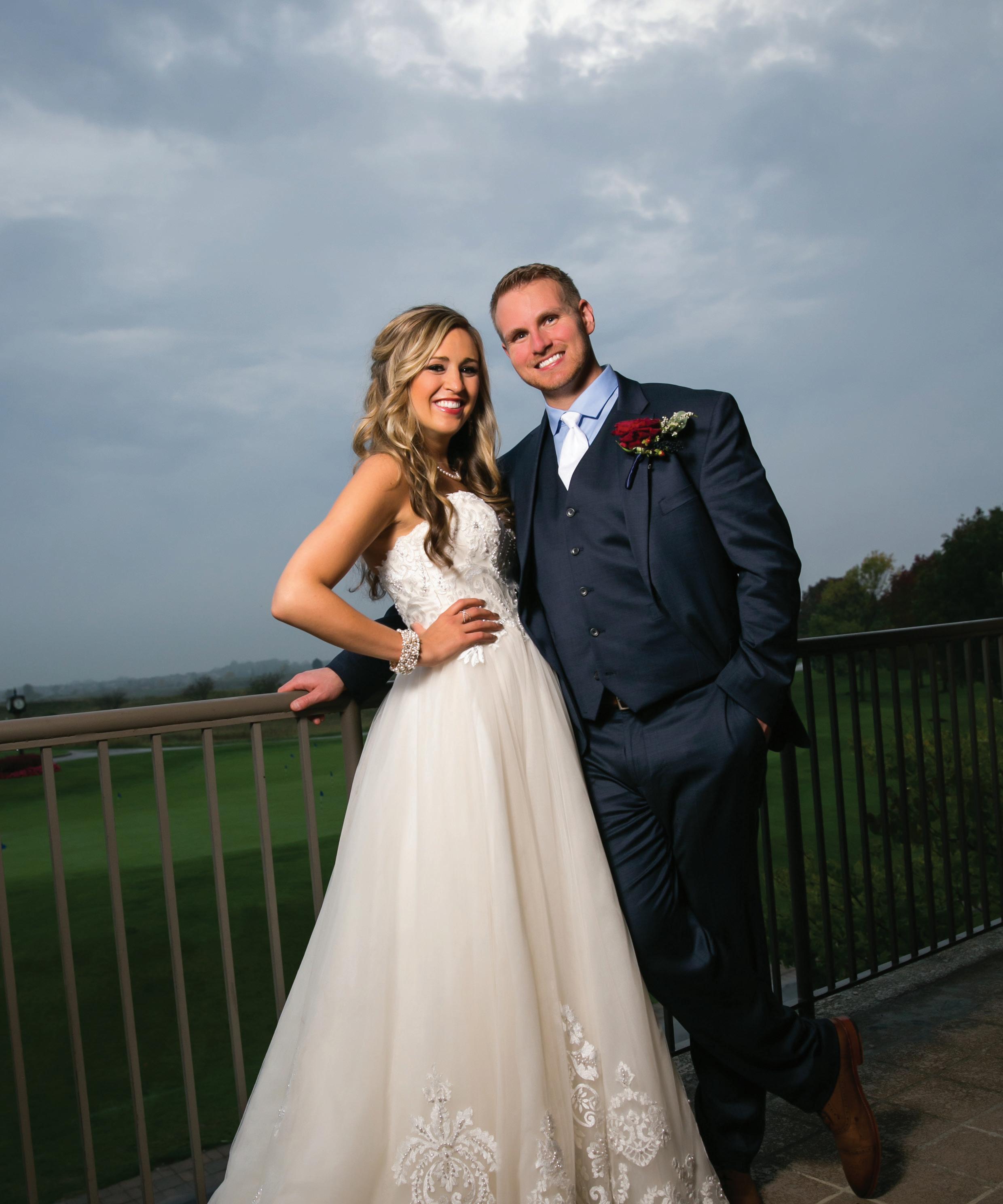 The rustic setting of The Haight was the perfect place for Sabrina and Jordan’s spring wedding. Sprawling greenery and white flowers decorated the wall in a modern twist to the traditional wedding arch. Groomsmen in gray escorted bridesmaids in slate with pops of purple in their bouquets down the aisle. In an elegant lace gown with a bountiful handtied bouquet by Town & Country Gardens, Sabrina made her way to her soonto-be husband knowing that his was the only hand she would hold for the rest of her life. A gorgeous reception awaited them after their vows. String lights hung across the ceiling and brick walls of The Haight, dangling over rustic wooden tables and Tolix chairs. Classic white plates sat atop modern copper chargers, surrounding centerpieces of lush spring flowers with geometric accents. Following a dinner of Lou Malnati’s deep dish pizza, street style tacos and barbecue by My Chef Catering, the newlyweds cut into a marble-esque cake, created by Two Wild Seeds. Sabrina and Jordan shared their first dance under the glow of the string lights before dancing the night away with their guests.