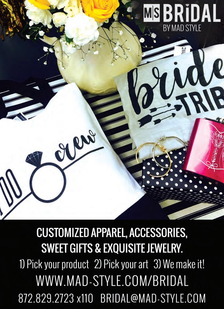 When selecting your team of vendors, it’s important to find individuals who share a similar style. Find your favorite looks in our Style Profiles starting on page 34, with a list of the vendor team who worked together to achieve that particular theme. You can also see more images from every Style Profile on our web site. And for that all-important dress decision, turn to our gown portfolio for pages of gorgeous dresses from top Chicagoland salons. We especially love the pup on page 106!