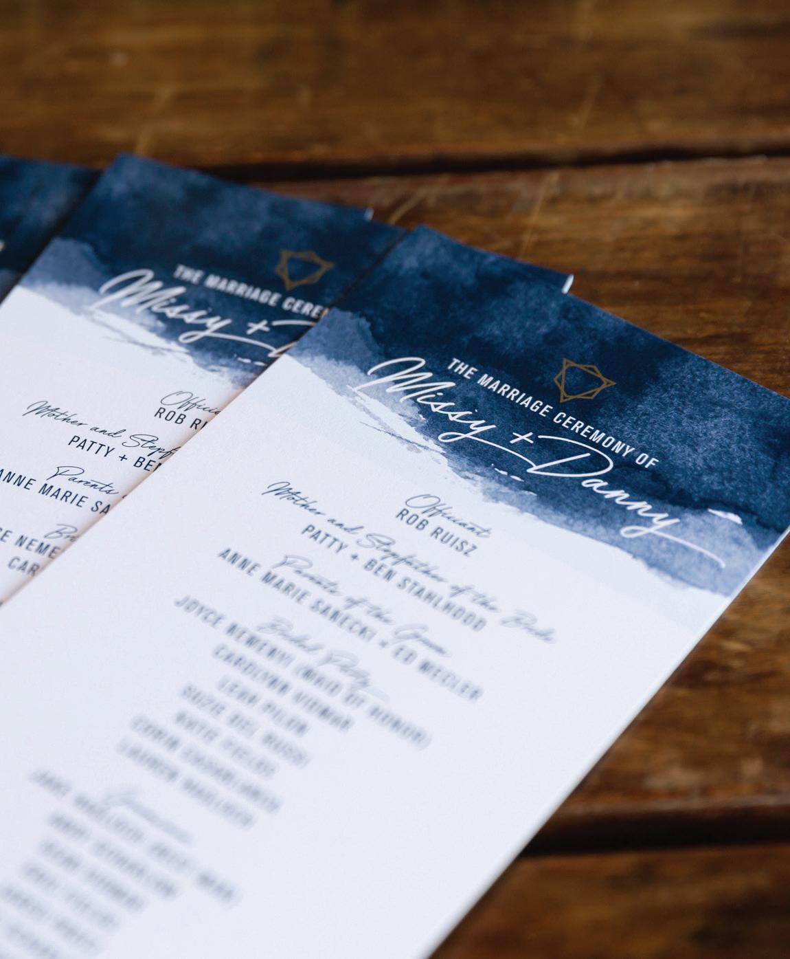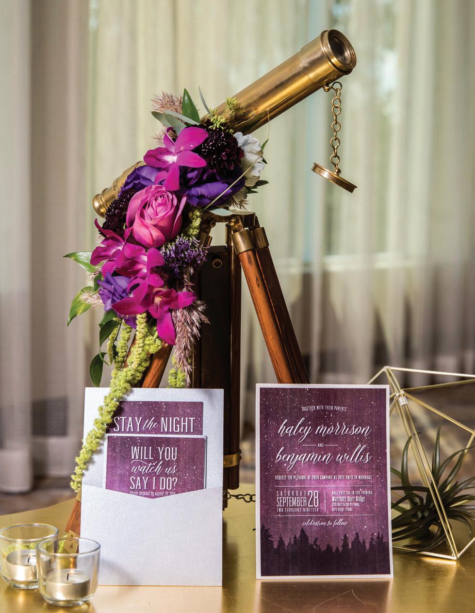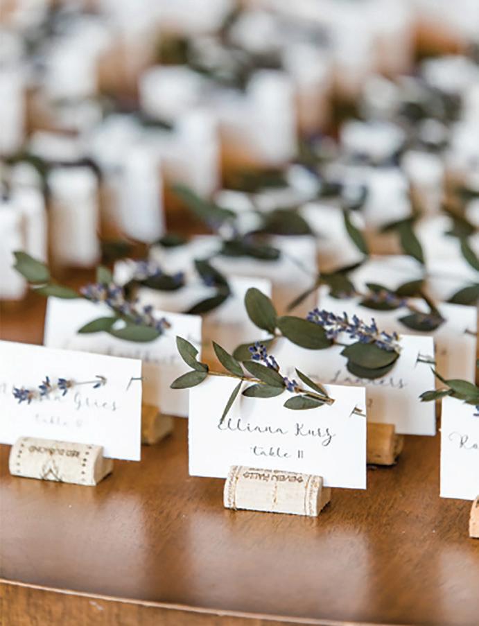 First, narrow down your style. You’ll be building your wedding around it, so you’ll want to stay consistent when you’re talking to vendors. Our Style Profiles start on page 34 and showcase some of this year’s hottest colors and themes, courtesy of some of our favorite vendors. From retro chic to moody boho, you’re sure to find something you’ll love among these pages.
