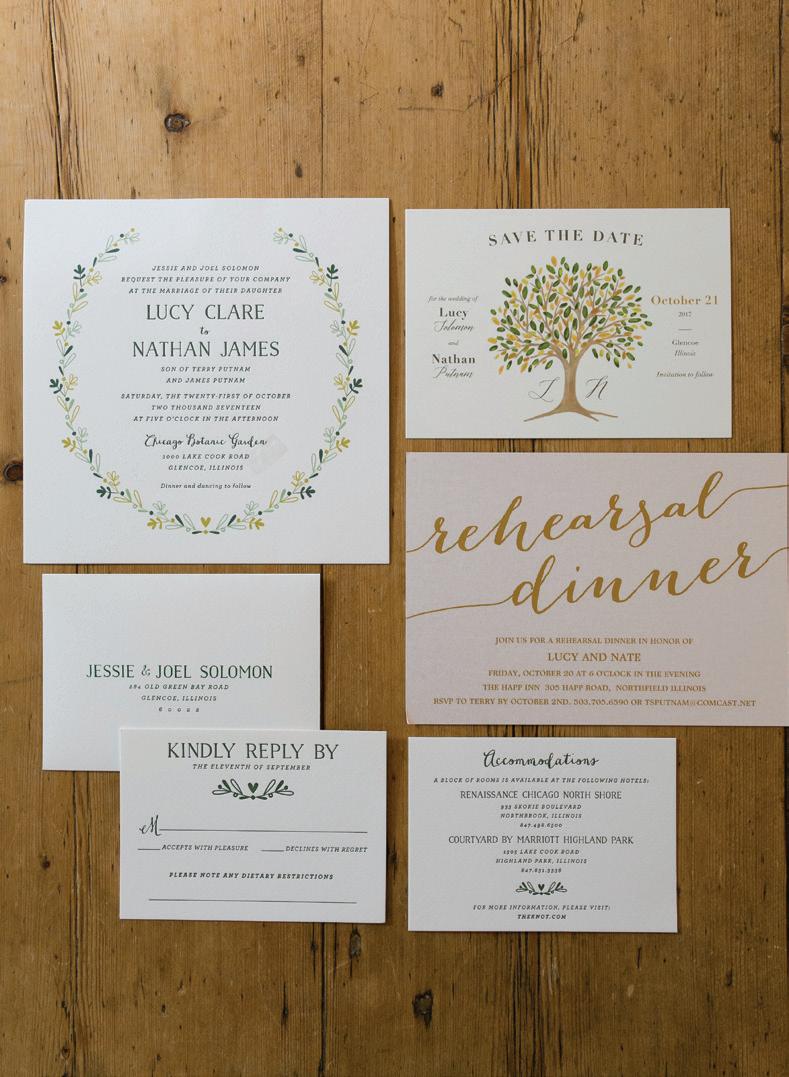 Next, build your dream team. It’s important to have a team of industry professionals you can trust to make your wedding dreams a reality without the stress of having to do it all yourself. Unique to The Celebration Society, our Venue and Vendor Guides (pages 47 and 103) showcase Chicagoland pros and all they have to offer side-by-side for you to compare.