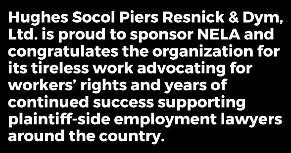 We are delighted you could join us for the nation’s largest annual gathering of plaintiffs’ employment lawyers. We extend our thanks to the members and board of NELA-Illinois for their warm and generous hospitality. We invite you to visit their exhibit table for information about attractions, restaurants, and activities in the surrounding area.