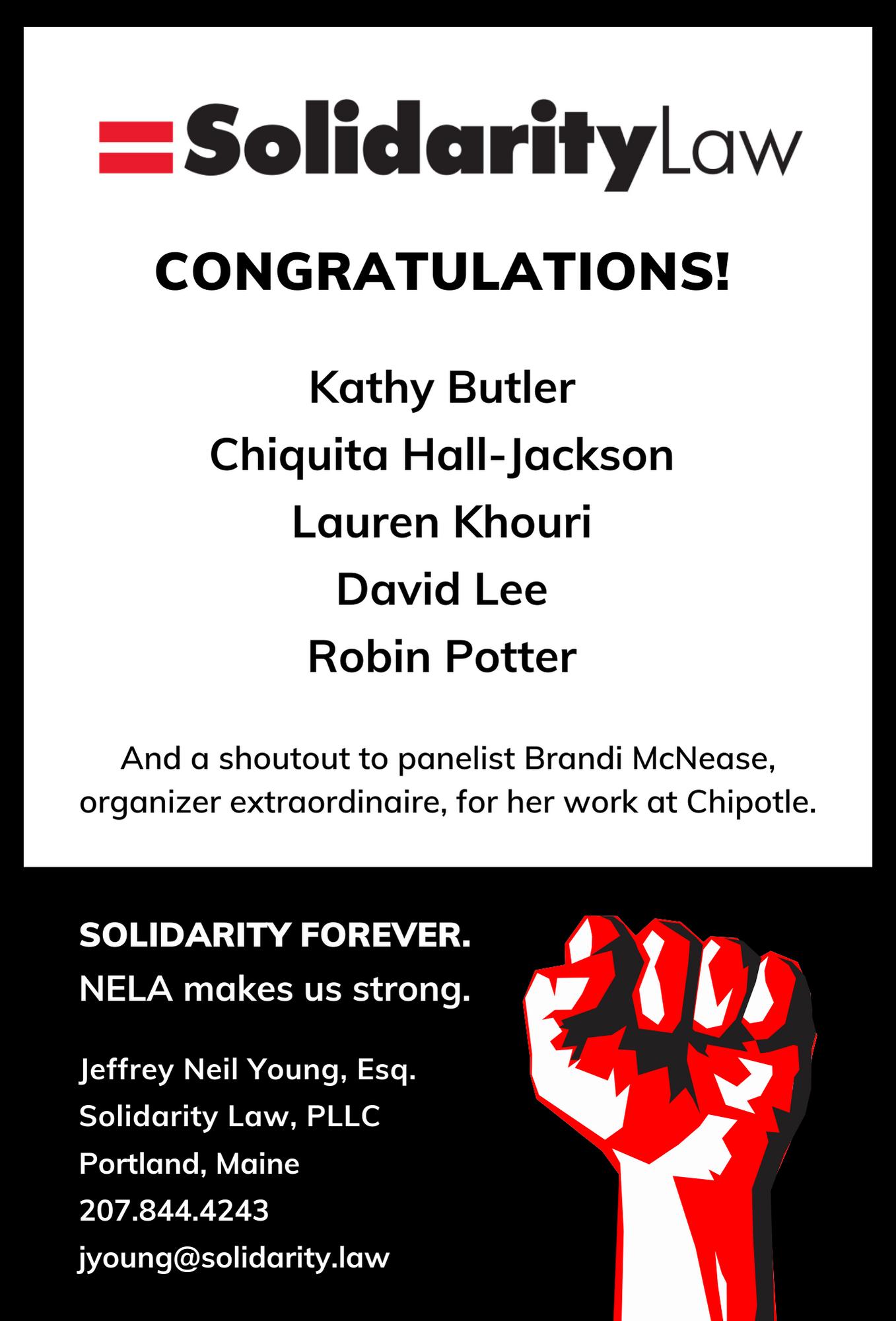 We stand for workers’ rights with our fellow NELA members.