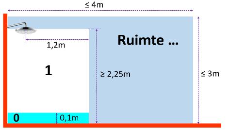 Hieronder een korte samenvatting van de ruimte, de volumes, het toegelaten elektrisch materieel en de bijkomende potentiaalvereffeningsverbinding (lees voor de volledigheid het volledige artikel in Boek 1).