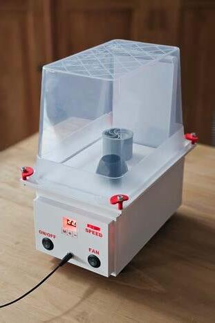 Een toestel waarin je gewassen kledij op een kapstok kan hangen en het er gestreken terug uit komt.