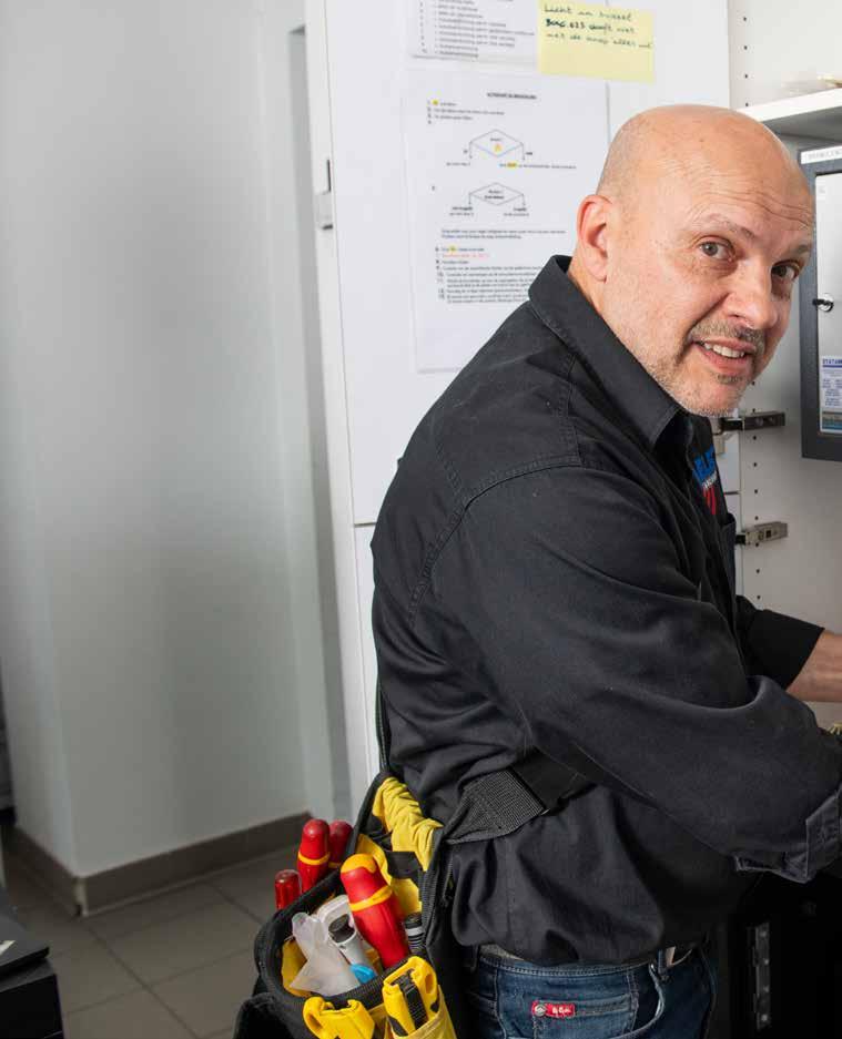 Tijdens de controle checkt hij de goede werking van de verschillende onderdelen en worden de batterijen na enkele jaren preventief vervangen: “Dankzij dit verplicht jaarlijks onderhoud worden ook valse alarmen tegengegaan.”