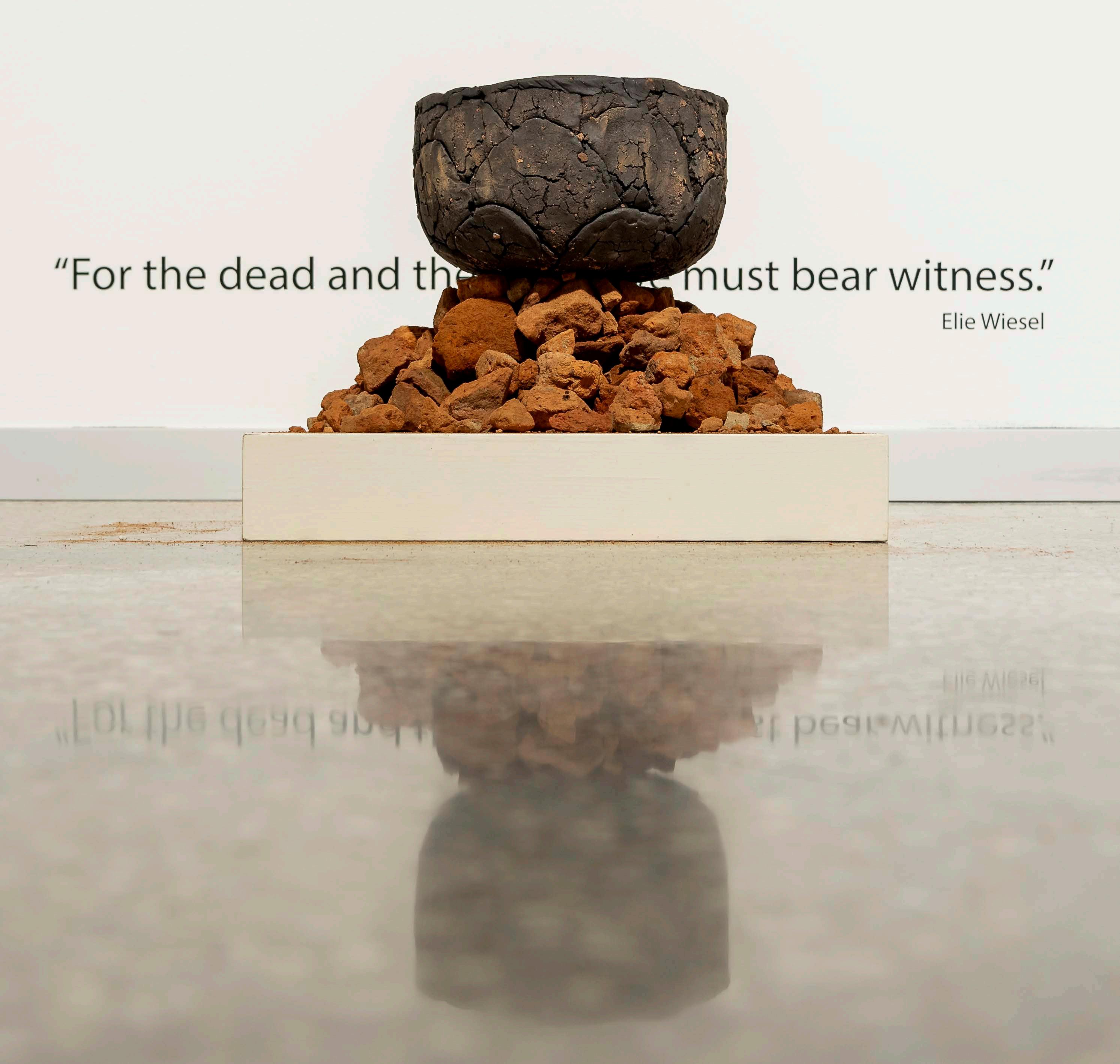 8A Ritual Vessel, 2019. Black clay with crushed brick made by people enslaved at the Wallace plantation resting on broken brick from plantation. Photographer Nash Baker. Exhibitions: Montgomery Museum of Fine Arts, Montgomery AL, 2022; Glassell School of Art, Museum of Fine Arts Houston, Houston TX, 2019.