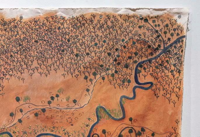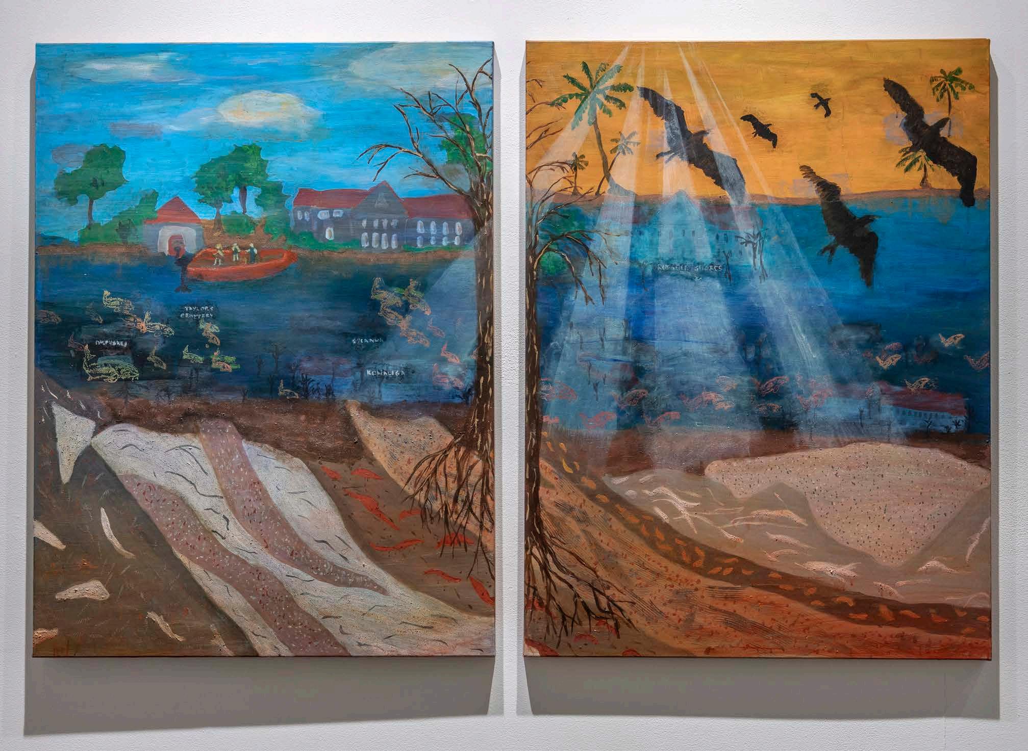 3A Coosa Bend, 2021. Acrylic paint and dirt from the Wallace grounds. Photographer Nash Baker. Exhibitions: Montgomery Museum of Fine Arts, Montgomery AL, 2022; Gadsden Museum of Art, Gadsden, AL, 2025.
