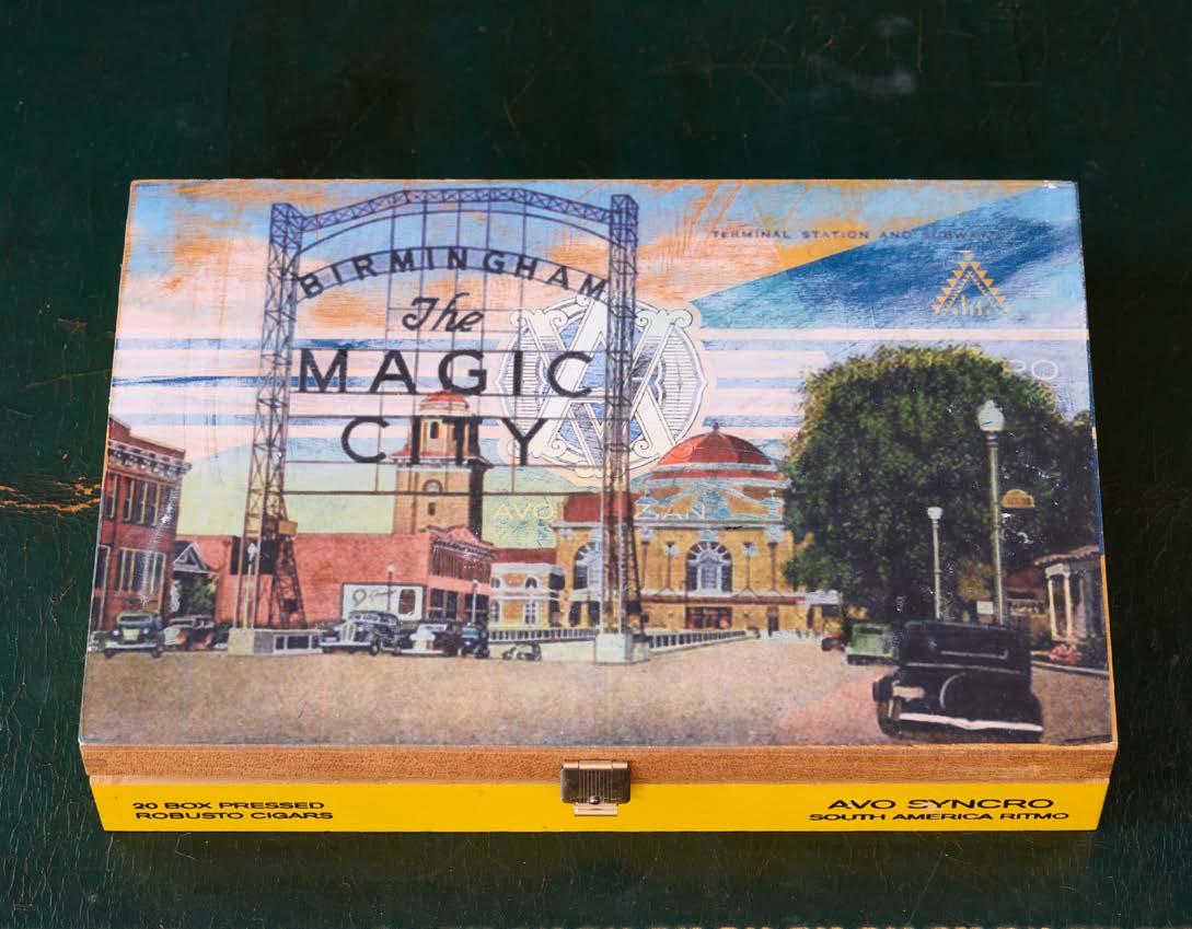 5H Jim Crow Chocolates (closed), 2017. Found box with a decaled image of a Birmingham postcard. Photographer Casey Woods. Exhibitions: Neill-Cochran House Museum,2022; Austin TX; Houston Center for Contemporary Craft, Houston TX, 2018.