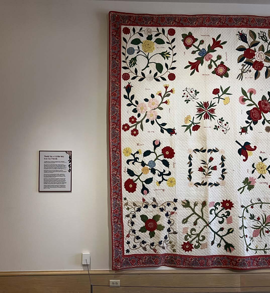 3B Mount Ida Quilt with Mount Ida Reconsidered, 2022. Installation shot with historic quilt completed in 1851 and now in the Alabama Museum and Archives. Photographer Nell Gottlieb. Exhibitions: Montgomery Museum of Fine Arts, Montgomery AL, 2022.