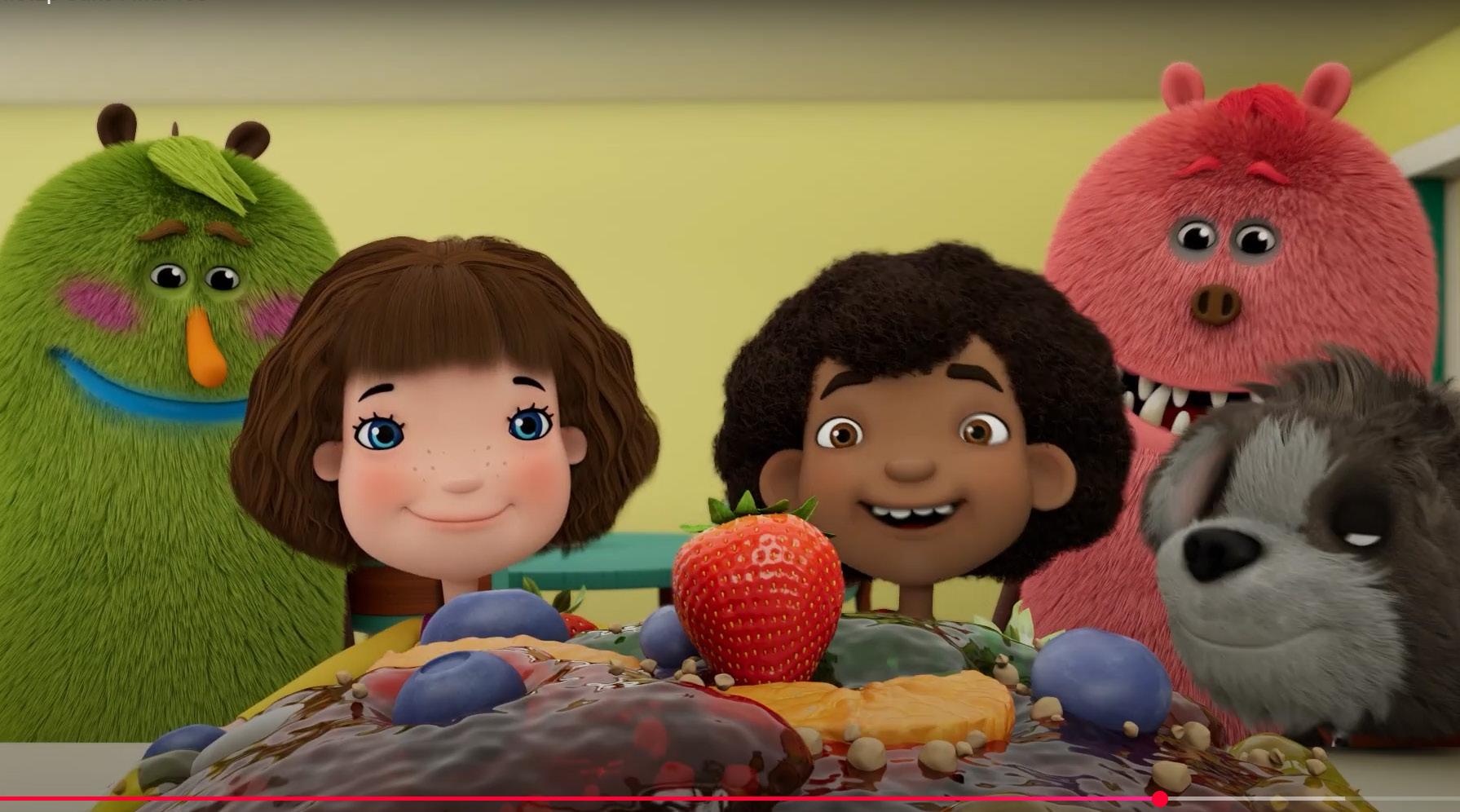 We OPEN with a theme song that gives us all the background the viewer needs to know. Nelly Jelly is a girl who loves to play and explore, but when things go wrong, she has a group of monster friends that are always there to help her.