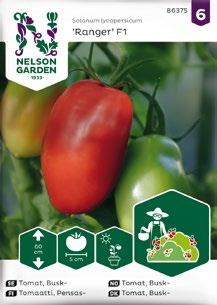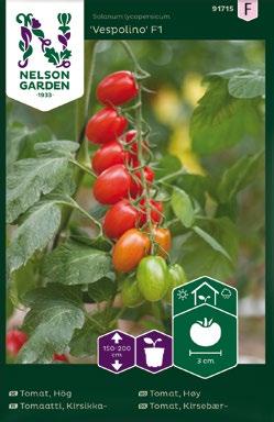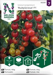 91657 Tomat, Ampel-, Cherry Falls 91664 Tomat, Kruka, Veranda Red F1 91670 Tomat, Kruka, Funnyplums Creamy Yellow F1 91671 Tomat, Kruka, Funnyplums Orange F1 91673 Tomat, Kruk, Funnyplums Rosy Pink F1 91675 Tomat, Busk-, Ranger F1 91680 Tomat, Hög, Rubylicious F1 91682 Tomat, Hög, Honeycomb F1 91684 Tomat, Hög, White Cherry 91685 Tomat, Hög, Lovertino F1 91692 Tomat, Hög, Matina, Organic 91701 Tomat, Hög, Rose Crush F1 91708 Tomat, Hög, Petita, Organic