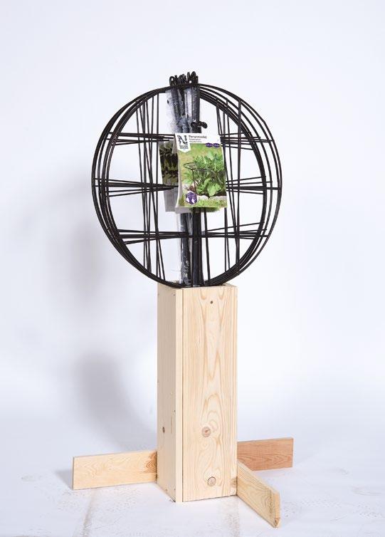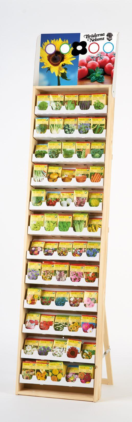 Lättplacerat balkongstativ med unik toppskylt, kan placeras i anslutning till övriga fröer, eller varför inte i kassalinjen?