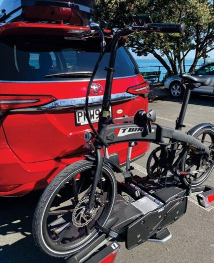 The $1800 (inc gst) foldable T Bike for sale right now at Bowater Toyota’s Parts Departments. This hybrid e-bike has a 35km range to assist pedalling, 7 speed Shimano gearing, a 36volt Samsumg lithium battery and folds at the handle bar stem and middle of the frame making for compact storage.
