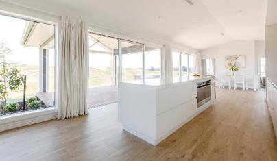 With vistas of rolling hillsides and glimmers of the shining sea, a jewel of a home lies conveniently situated between the Coastal and Inland Highways. Its view is rurally peaceful, the decor is tastefully exquisite, and its palette is sublime. Built by the experienced team at Craig Finnie Builders, homeowners Matt Gaines and Emily Harvey say the collaboration between them and their architect Jason Anderson culminated in a dream home that perfectly fits the needs of their growing family. “We had been looking at lifestyle properties for a while as we wanted to have space around us. It was important to us to have land for our children to grow up on, but was still close to town and this location suited both of those wants.”
