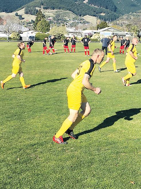 Axel Lowery sets off on a run for Motueka United in a match from last season. He is well-supported by, from left, Drake Fitzgerald, Rydah Kaahu-Gear and Baylee Rowntree.