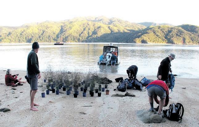 Helen Lindsay, Project Janzsoon’s Restoration supervisor, coordinated and trained groups from Motueka High School and Abel Tasman Birdsong Trust volunteers to plant the trees on Adele Island and the ridges above Anchorage.