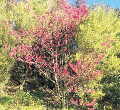It was often marketed as a sterile tree but this variety produces fertile fruit, and from late July through to early September, mature trees produce thousands of appealing dark pink flowers that attract pollinators such as bees, bellbirds and tui.