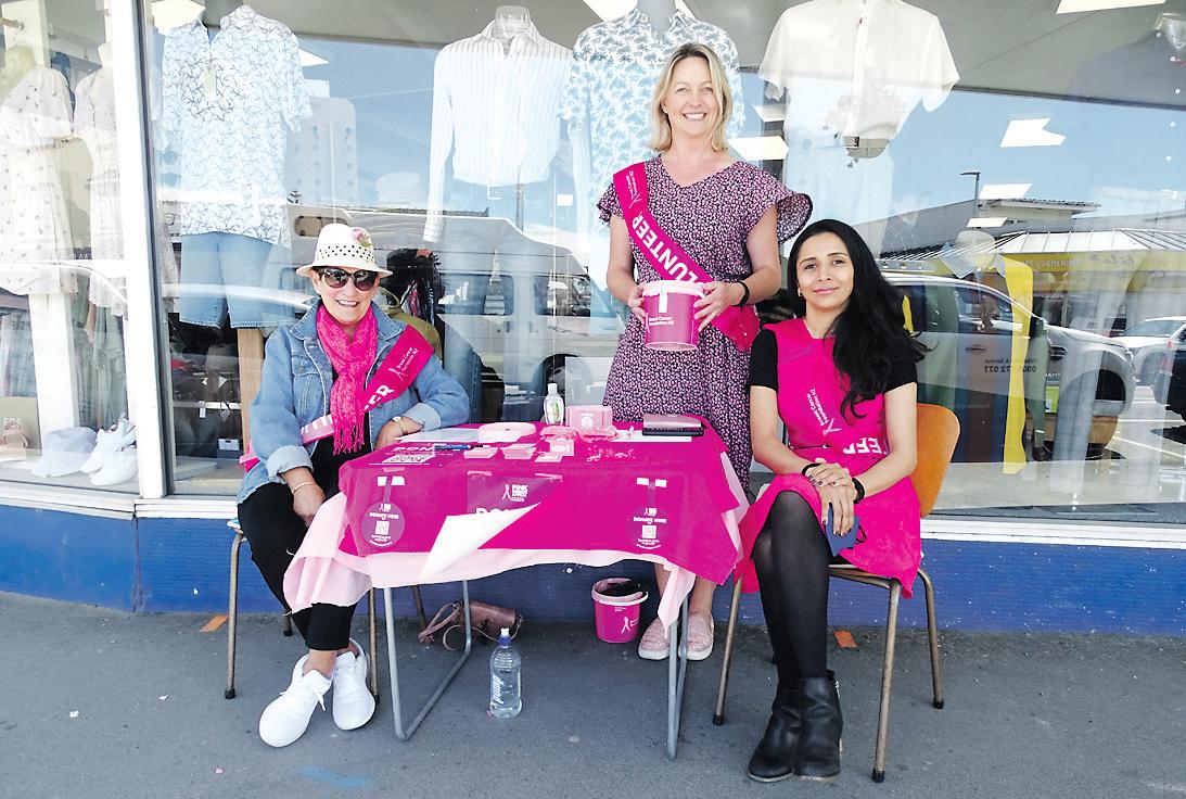 Karen Katene-Griffith, Claire Stilwell and Mukti Kansara during the Pink Ribbon Street Appeal on Friday, 29 October in Motueka. The Street Appeal took place on Saturday too and organisers say they’re grateful to the Motueka community getting behind efforts to fight against breast cancer.