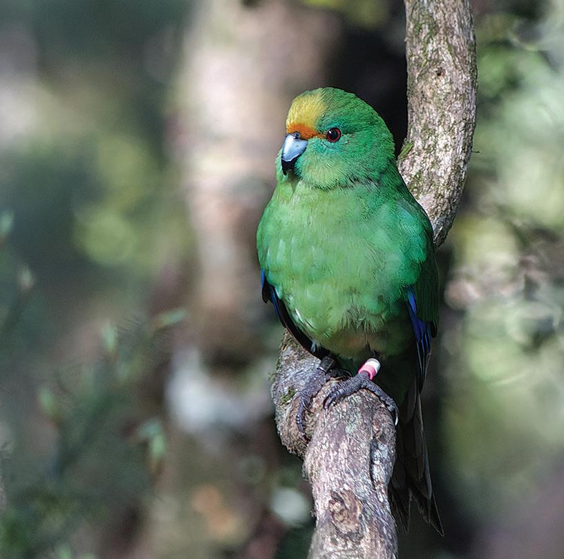 The kākāriki karaka, also known as the orange-fronted parakeet, is endemic but is in serious trouble due to intro-