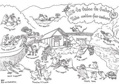 The biosecurity ranger has not only published her own children’s colouring-in book, but she has also created a colouring-in activity in honour of all the volunteer teams who take action at the sanctuary. Steffi says the activity, which can be coloured in by children (and adults), was inspired by this year’s theme for conservation week - ‘take action for nature’.