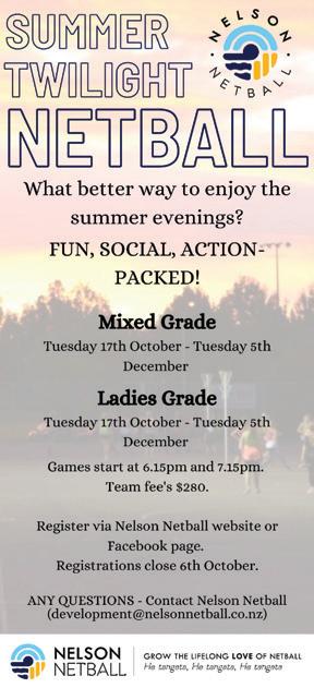 “If you can throw over hand you can pitch, and this makes games viable and enjoyable at all age levels,” he says. For more information, talk to your school sports co-ordinator or head along to www.tetauihubaseball.nz or www. nelsonheatbaseball.org.nz. Or phone/text 021 343 690.