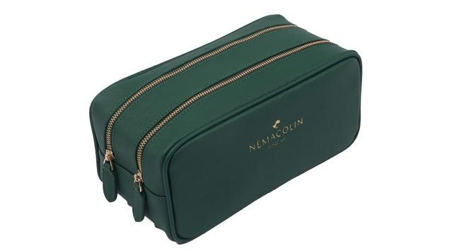 Keep your makeup minty fresh with this convenient cosmetic case. Despite its compact, ultra-portable size, this pouch’s dual zippered pockets can hold a cornucopia of cosmetics. The leather exterior and cotton lining are perfectly protective and easy to clean.