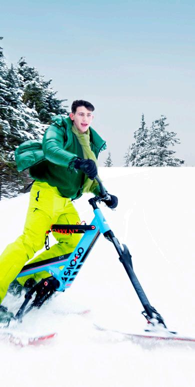 Lessons available for $130 per 1-hour lesson. Lift ticket is additional. The patented Sno-Go technology enables the motions of skiing with a lean on the bike’s handlebars. The bike can be loaded on and off the chairlift easily.