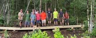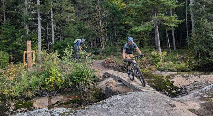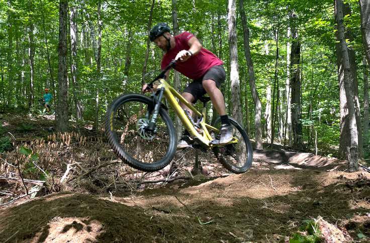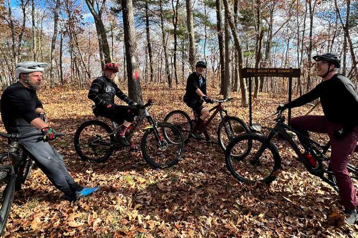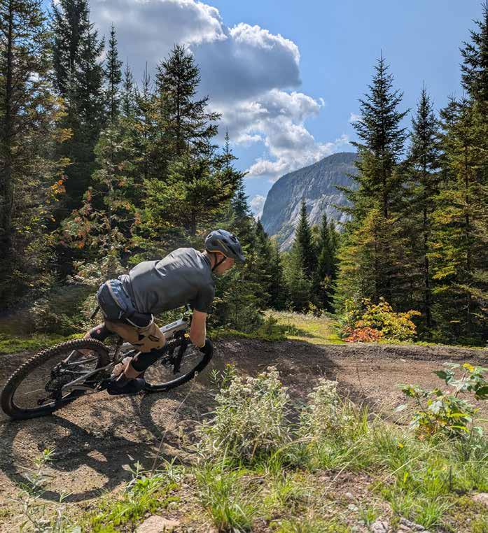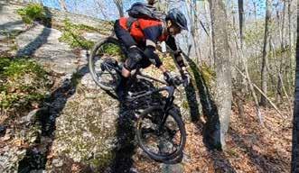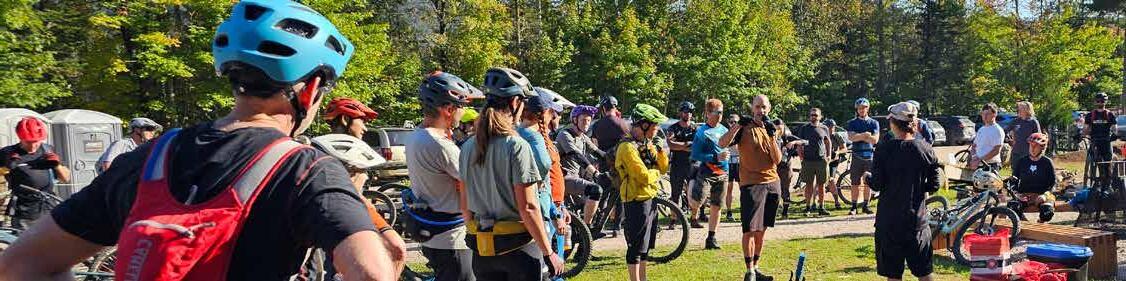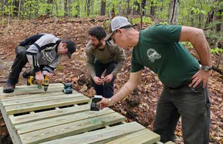 spots. The Friends of Earl’s trail crew also revamped a section of the popular Tinker Toy trail, adding exciting new flow elements. The Sawmiller’s group in Northampton hosted a trail work day, rallying a big volunteer turnout— including the NCC Trailblasters youth team and Thunder Mountain DEVO team—to replace 50 feet of bog bridge and install trail signage across the network. Plus, they’ve negotiated 5 new miles of NEMBA-designed mountain bike trails at Northfield Mountain, with work kicking off in spring 2025! The chapter is also focused on enhancing the Deerfield River Trails next to Thunder Mountain Bike Park, aiming to improve access for all users. This includes re-routing the main climbing trail and potentially creating a more accessible route from the bottom of the mountain. The chapter continues taking its gnome waypoint sign on a tour of local bike shops to boost membership, and it’s already helped push their numbers past 200!