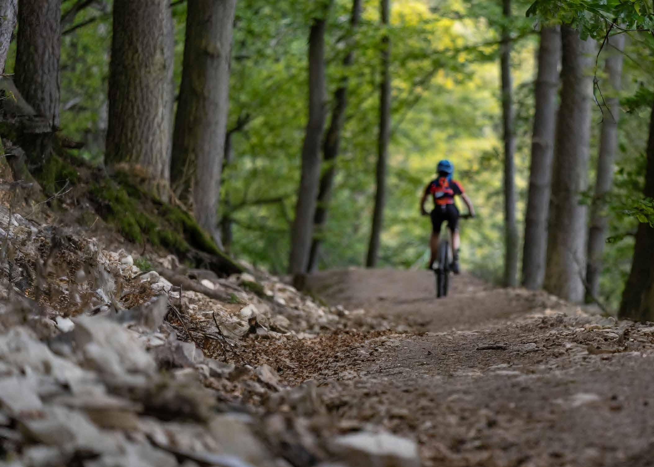 “I feel lucky that in my professional life, I get to share my passion for mountain biking with a whole spectrum of mountain bikers, from first-timers to more experienced riders. I truly love sharing the fun and escape that riding provides.”