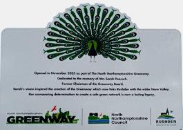 Theofficialopeningwasattendedbycouncillors fromNorthNorthantsCouncilandRushdenTown Council.Amemorialsign,showingaflamboyant peacock,wasalsounveiledinmemoryofSarah Peacock.