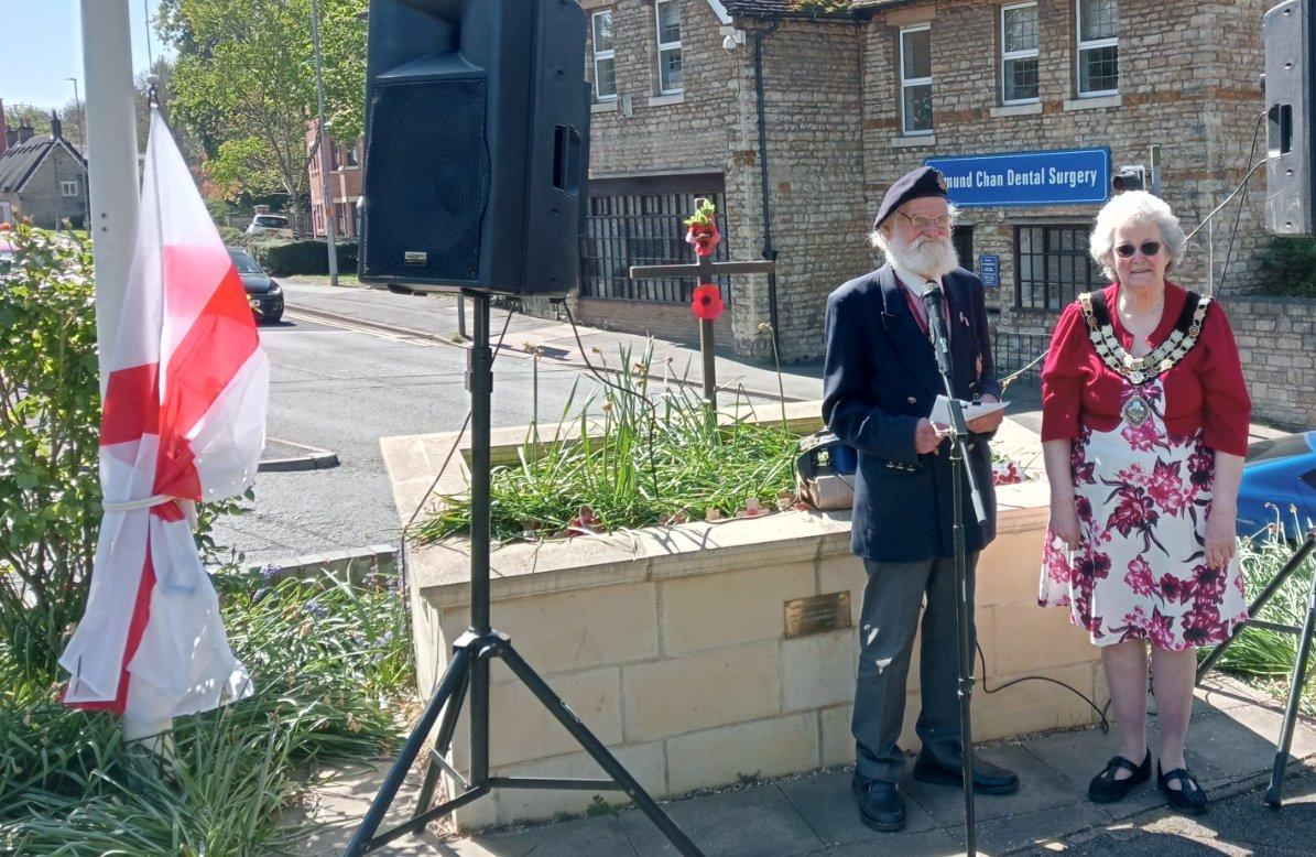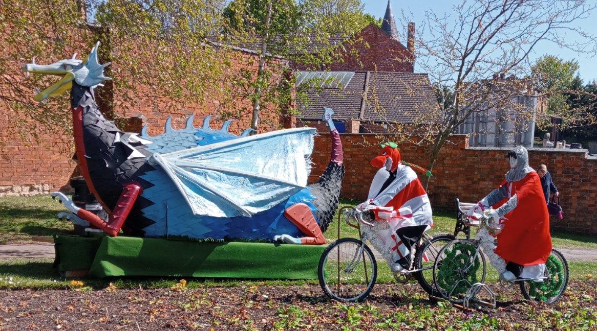 RushdenTownCouncil(RTC)celebrateditsEnglishheritagewithaflag-raisingeventinthecentreof theTown.Meanwhile,attheTownentrance,St.GeorgeâsDragoncrouchedalongsidetheâBikersâ.