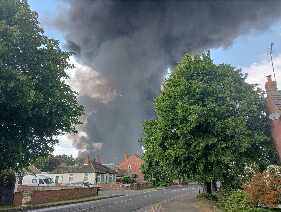 Thefirecausedchaos.Thesmokeroseand spreadacrossRushden,HighamFerrers, RingsteadandevenRaunds.Theplumeof smokewasvisibleasfarsouthasBedford, andasfareastasHuntingdon.