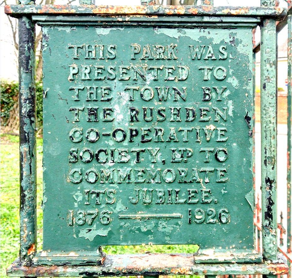 TheParkislocatedonthesouthernedgeofRushden,adjacenttoBedfordRoadandKingsmead Park.100yearsago,itwasdonatedtotheTownbytheRushdenIndustrialCo-operativeSocietyand wasnamedtomarkthe50thanniversaryoftheSociety,i.e.itsJubilee!