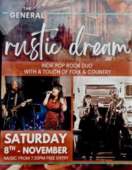 “RusticDream”arealocalIndiepoprockduo, withatouchoffolkandCountry&Western.