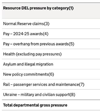 5 Resource DEL pressure above provision in departmental plans for 2024-25 resulting from 2023-24 pay awards.